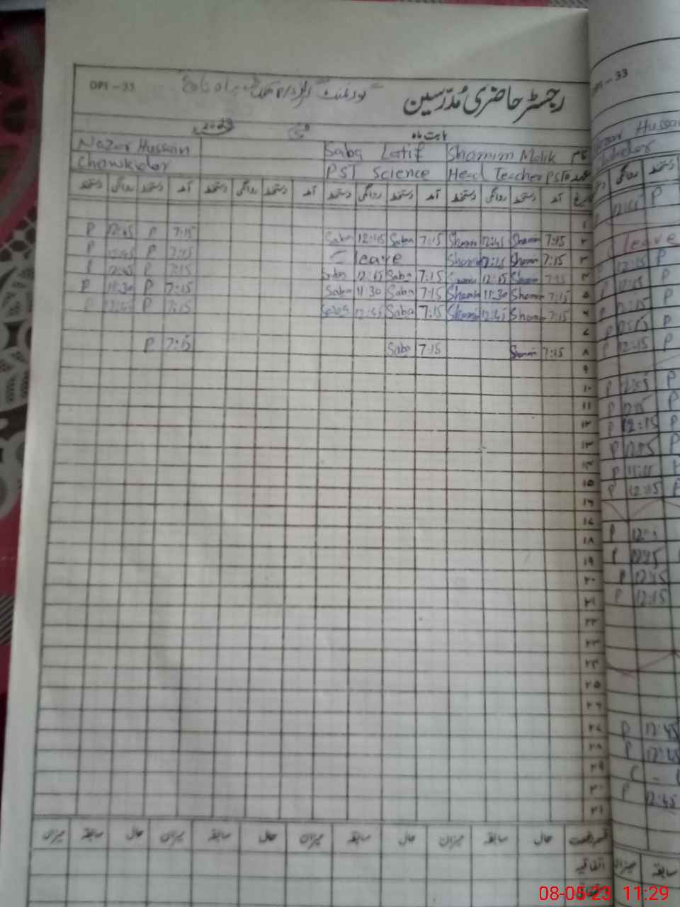 | Name: SH**** MA**** Designation: (School Headmaster's/Headmistress's) PST Phone/Cell Number: 03**** |