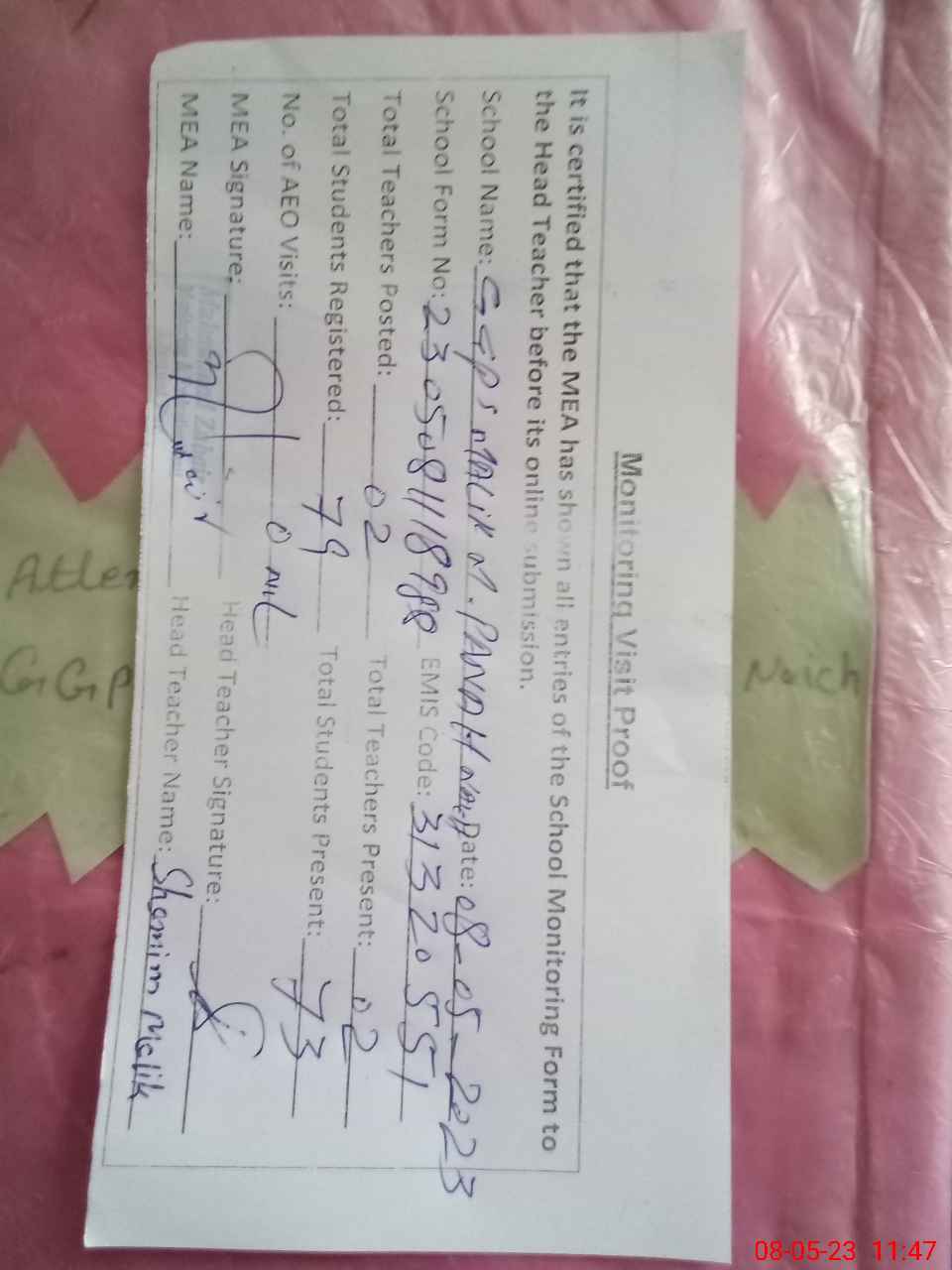 | EMIS Code: 31320551 | Name of School: GGPS MALIK MUHAMMAD PANNAH NAICH | |||