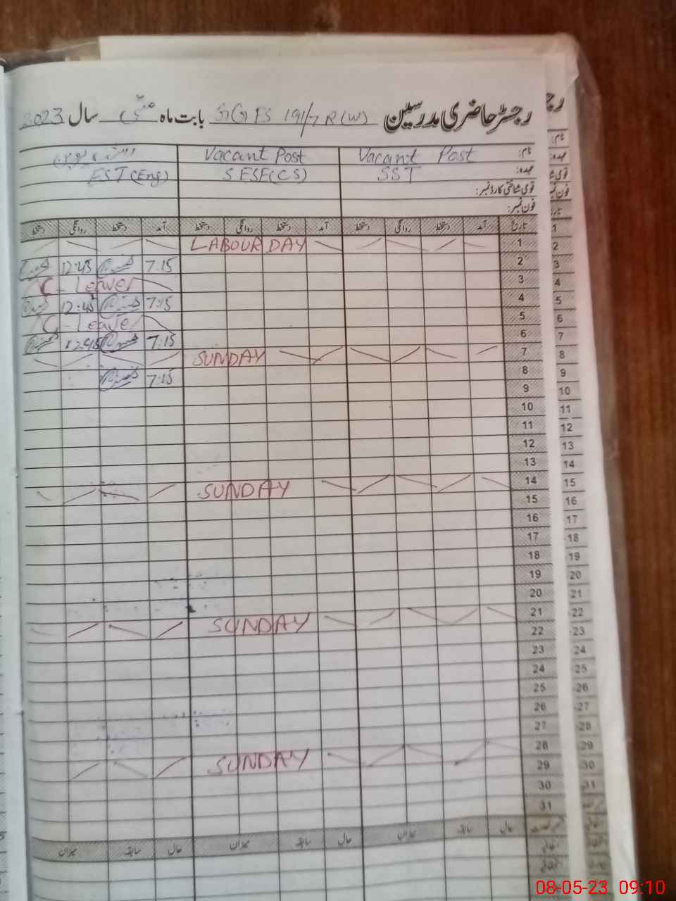 | CNIC | Full Name | Designation | R/C | Absence During Last Calender Month |