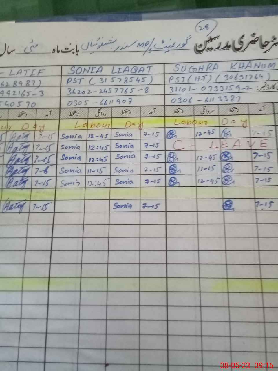 | CNIC | Full Name | Designation | R/C | Absence During Last Calender Month |