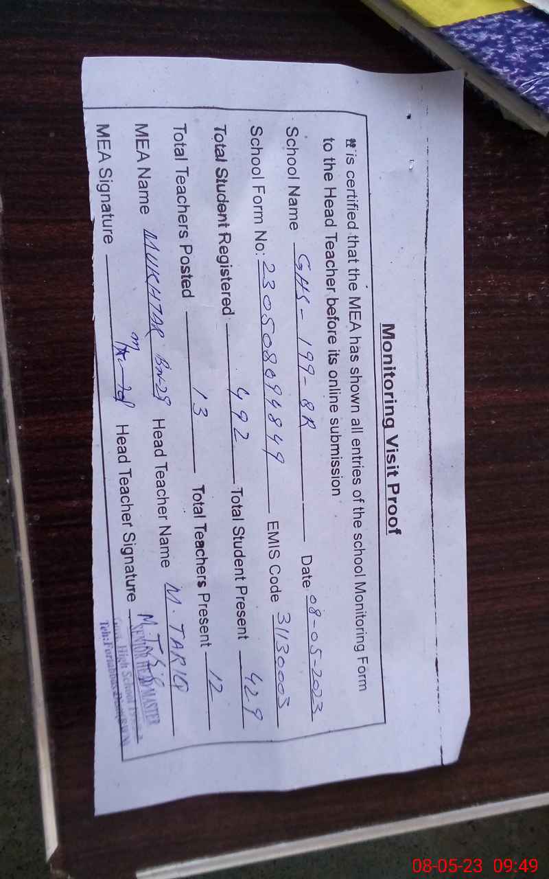 | EMIS Code: 31130003 | Name of School: GHS CHAK 199/8R | |||