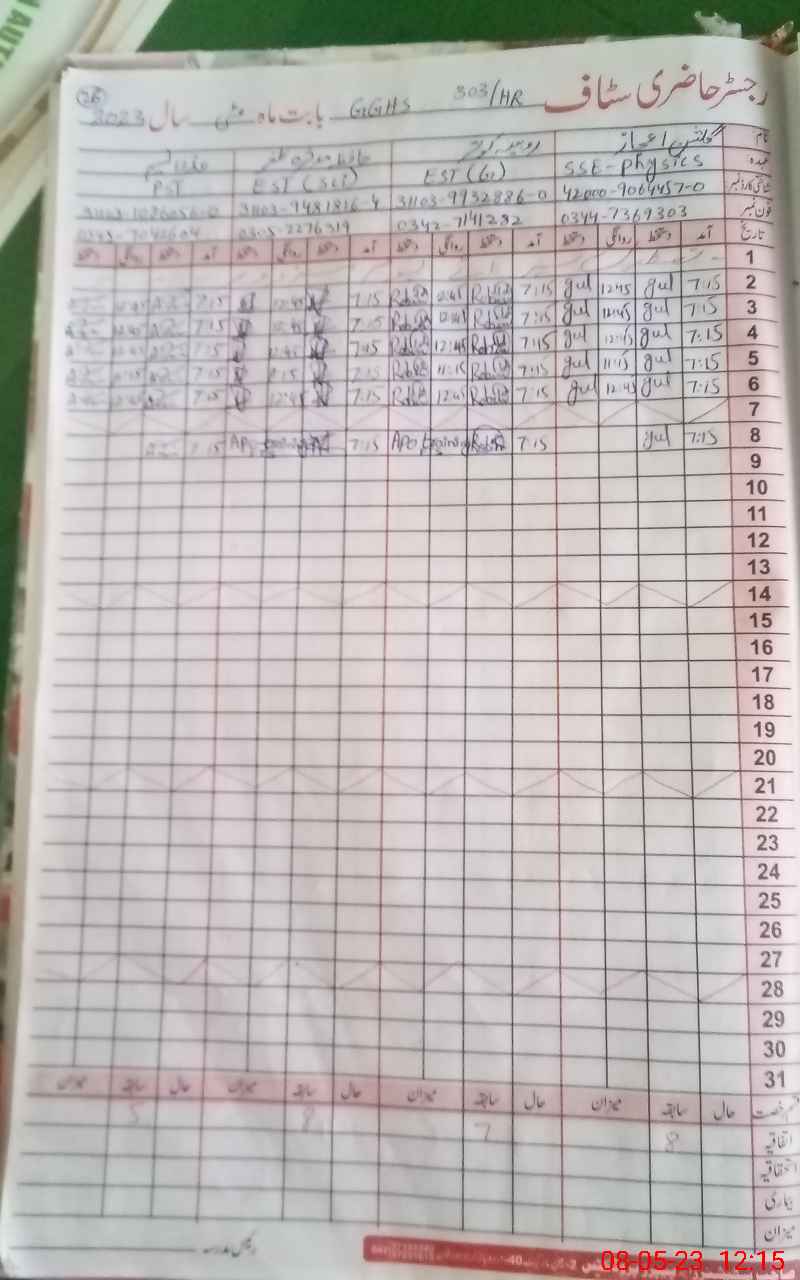 | Name: Gu**** Ij**** Designation: (School Headmaster's/Headmistress's) SSE (Phics) Phone/Cell Number: 03**** |