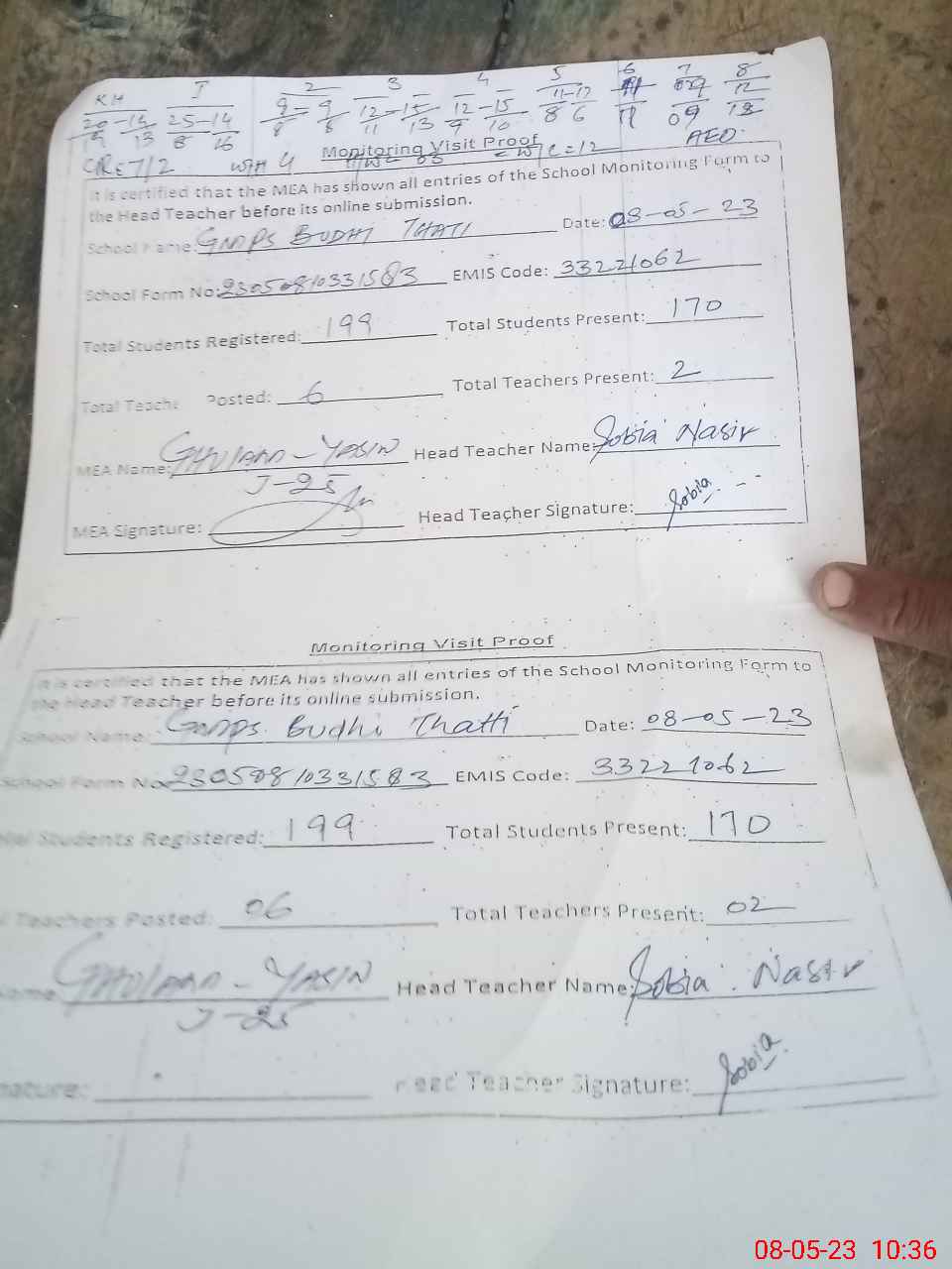 | Attendance Register | Head Teacher | MEA with School | Visit Proof |