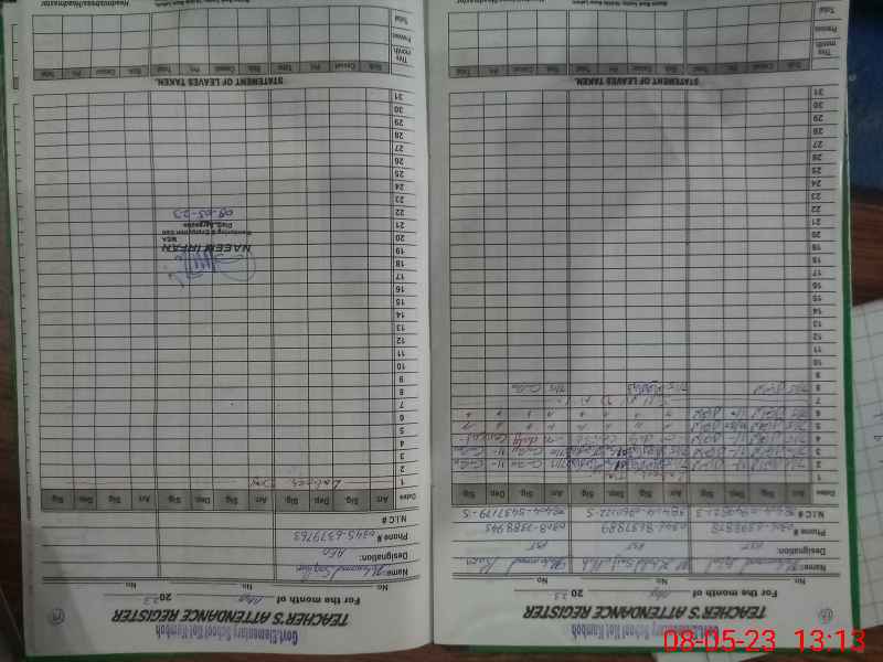 | Name: Kh**** Ha**** Designation: (School Headmaster's/Headmistress's) EST I/C HEADMASTER Phone/Cell Number: 03**** |