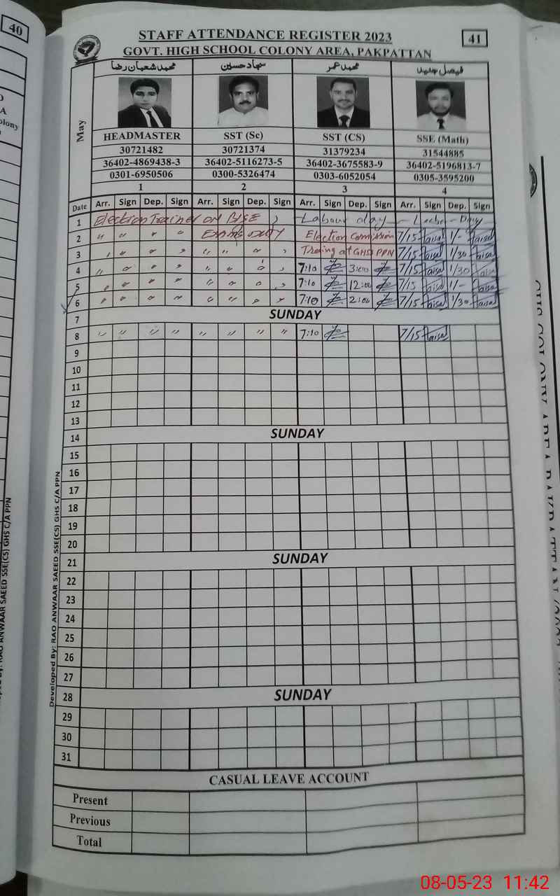 | Name: SA**** HU**** Designation: (School Headmaster's/Headmistress's) HEADMASTER Phone/Cell Number: 03**** |