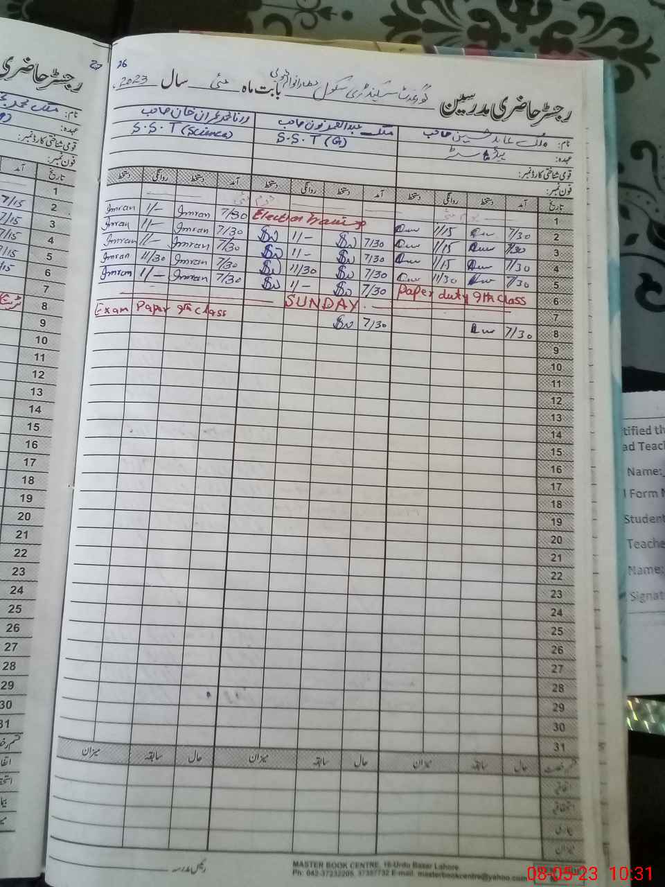 | 38**** | Mu**** Im**** Kh**** | SST | Regular | 0 | 0 | 0 | 0 | 0 | 0 | 0 | 0 | 0 | Exam Duty |