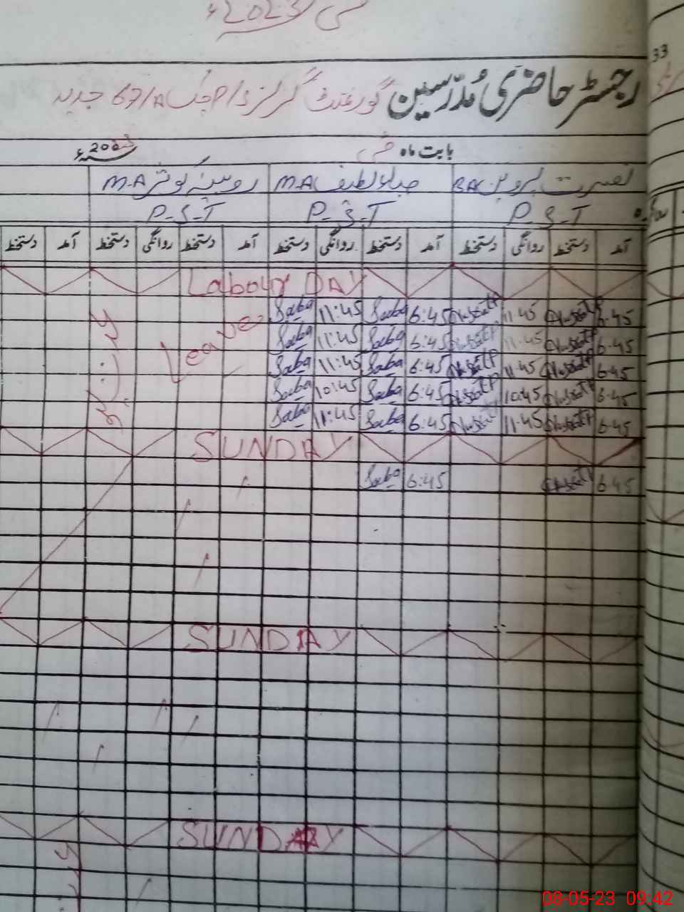 | CNIC | Full Name | Designation | R/C | Absence During Last Calender Month |