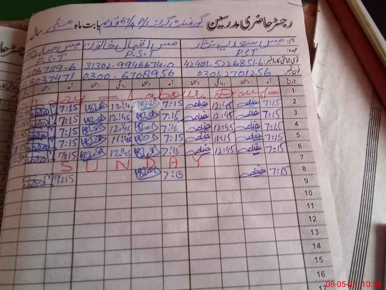 | CNIC | Full Name | Designation | R/C | Absence During Last Calender Month |