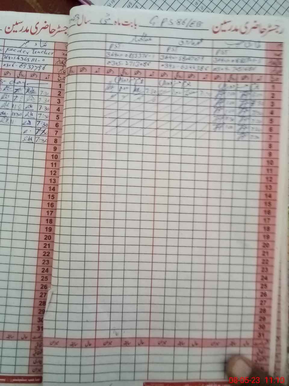 | Name: TA**** HA**** Designation: (School Headmaster's/Headmistress's) PST Phone/Cell Number: 03**** |
