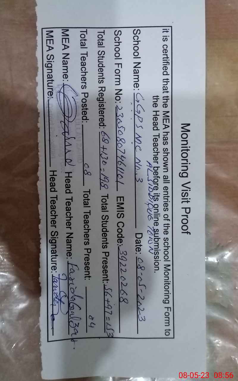 | EMIS Code: 39220268 | Name of School: GGPS MC NO. 3 AL-SADDIQUE TOWN | |||