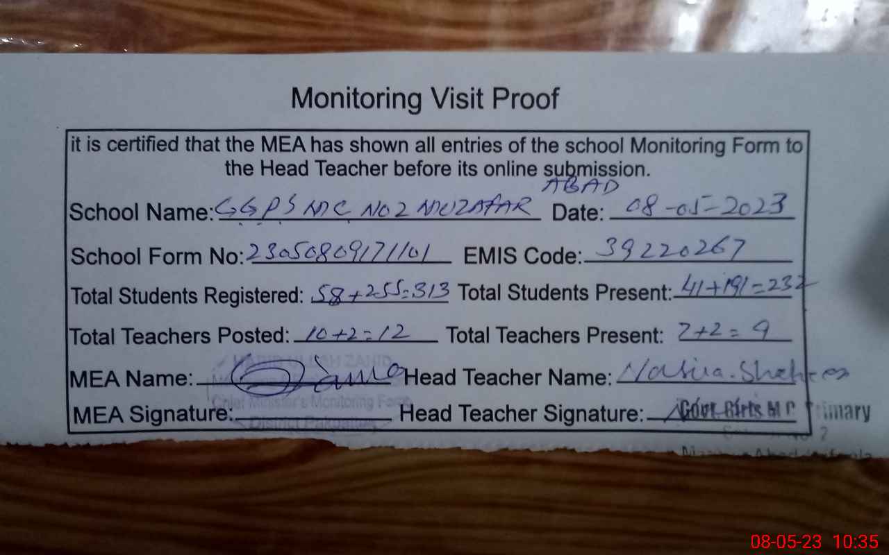 | EMIS Code: 39220267 | Name of School: GGPS MC NO. 2 MUZAFAR ABAD | |||