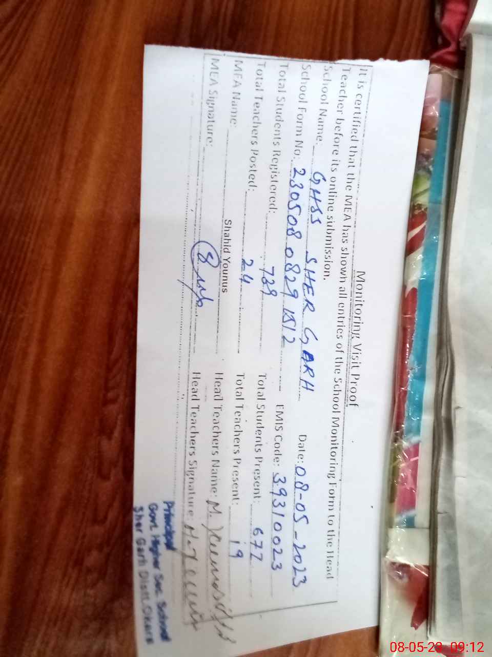 | Attendance Register | Head Teacher | MEA with School | Visit Proof |
