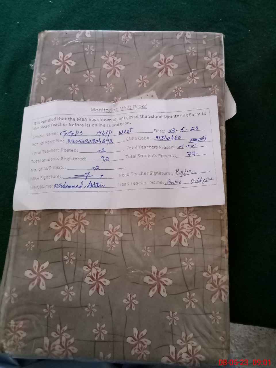 | Attendance Register | Head Teacher | MEA with School | Visit Proof |