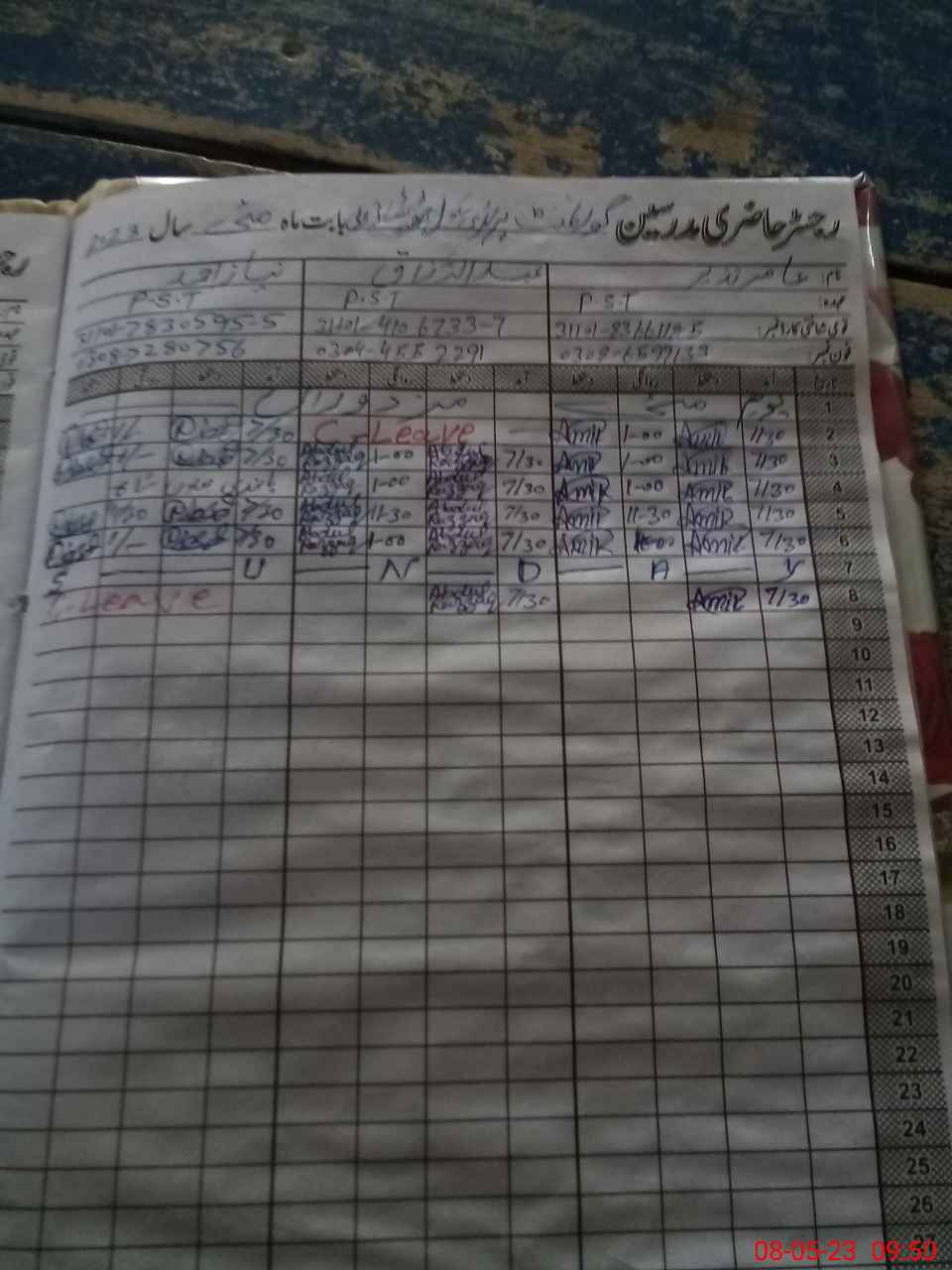 | CNIC | Full Name | Designation | R/C | Absence During Last Calender Month |