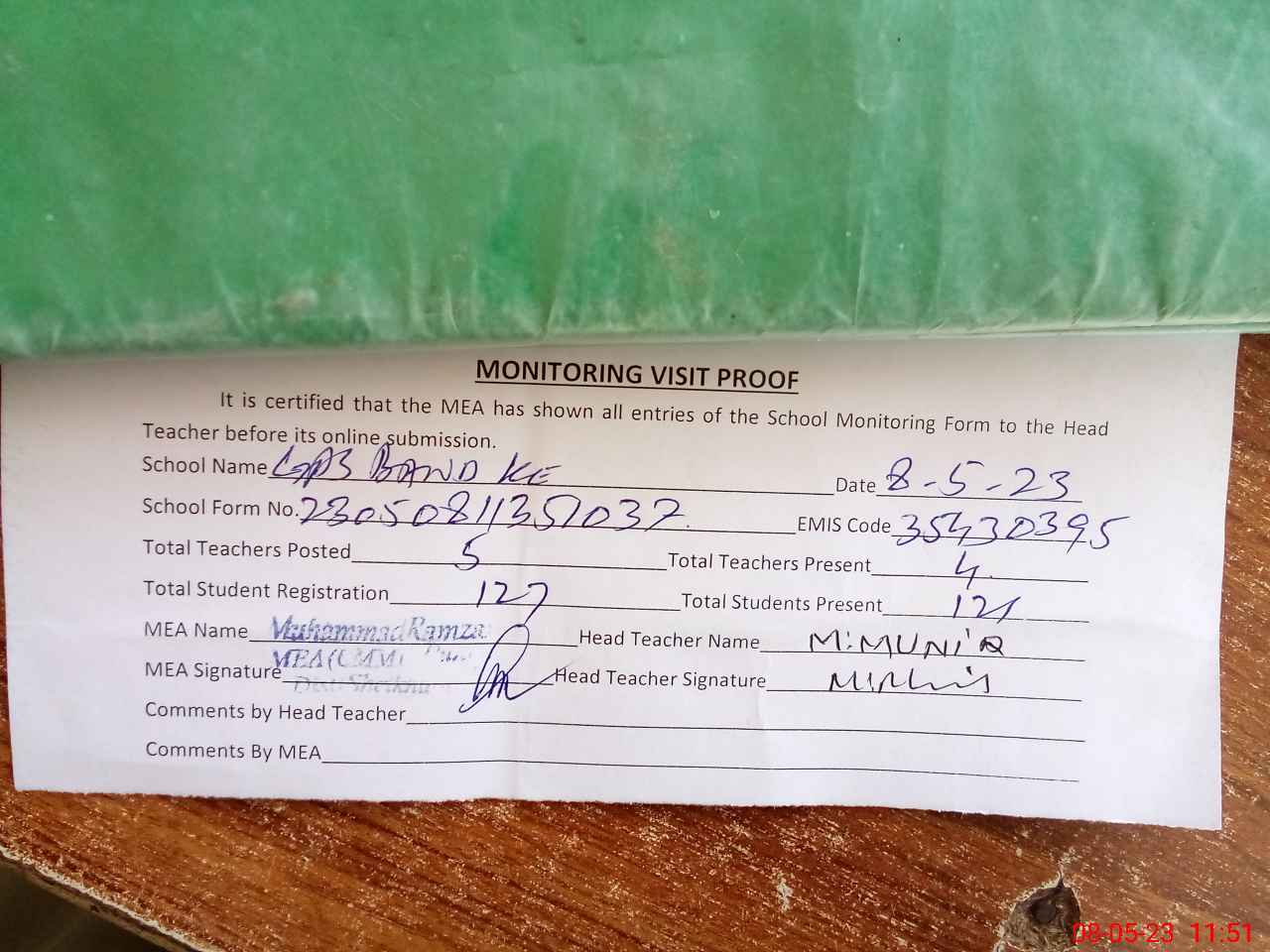 | EMIS Code: 35430395 | Name of School: GPS BANDO KEY KOHNA | |||