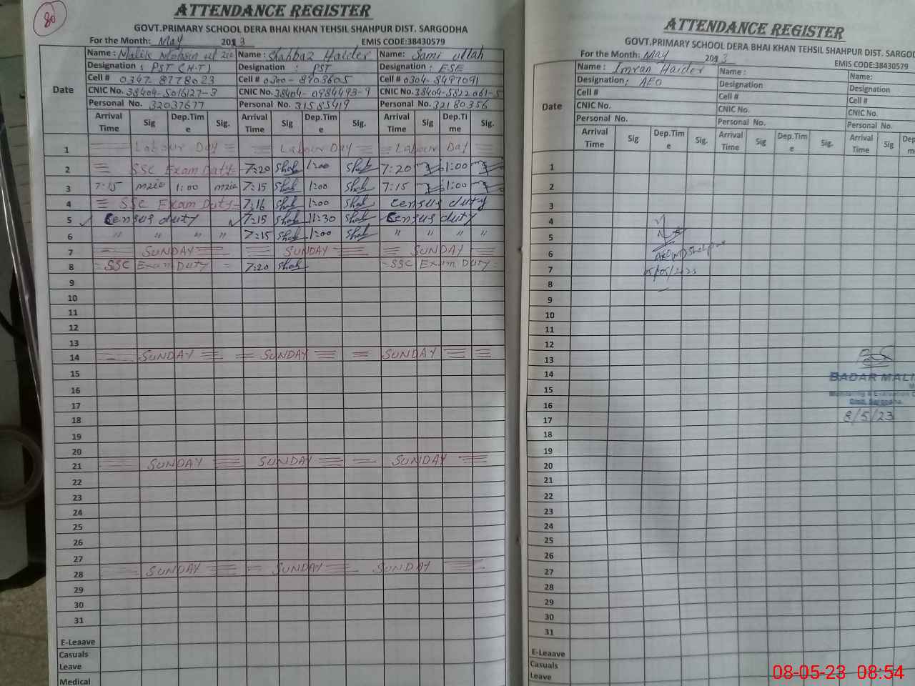 | 38**** | Sa**** Ul**** | Contract | 0 | 0 | 0 | 0 | 0 | 0 | 0 | 0 | 0 | Exam Duty | |