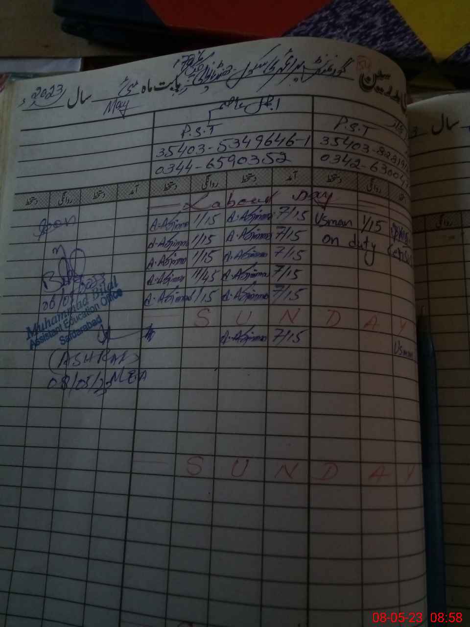 | Name: US**** IJ**** Designation: (School Headmaster's/Headmistress's) ESE Phone/Cell Number: 03**** |