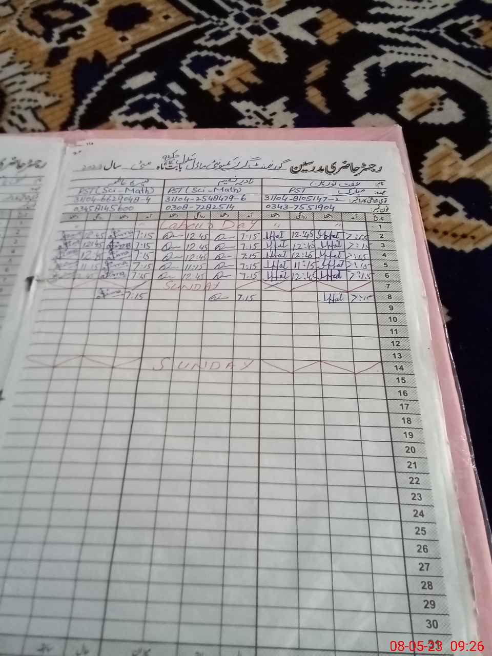 | Name: Lu**** Ya**** Designation: (School Headmaster's/Headmistress's) PST Phone/Cell Number: 03**** |