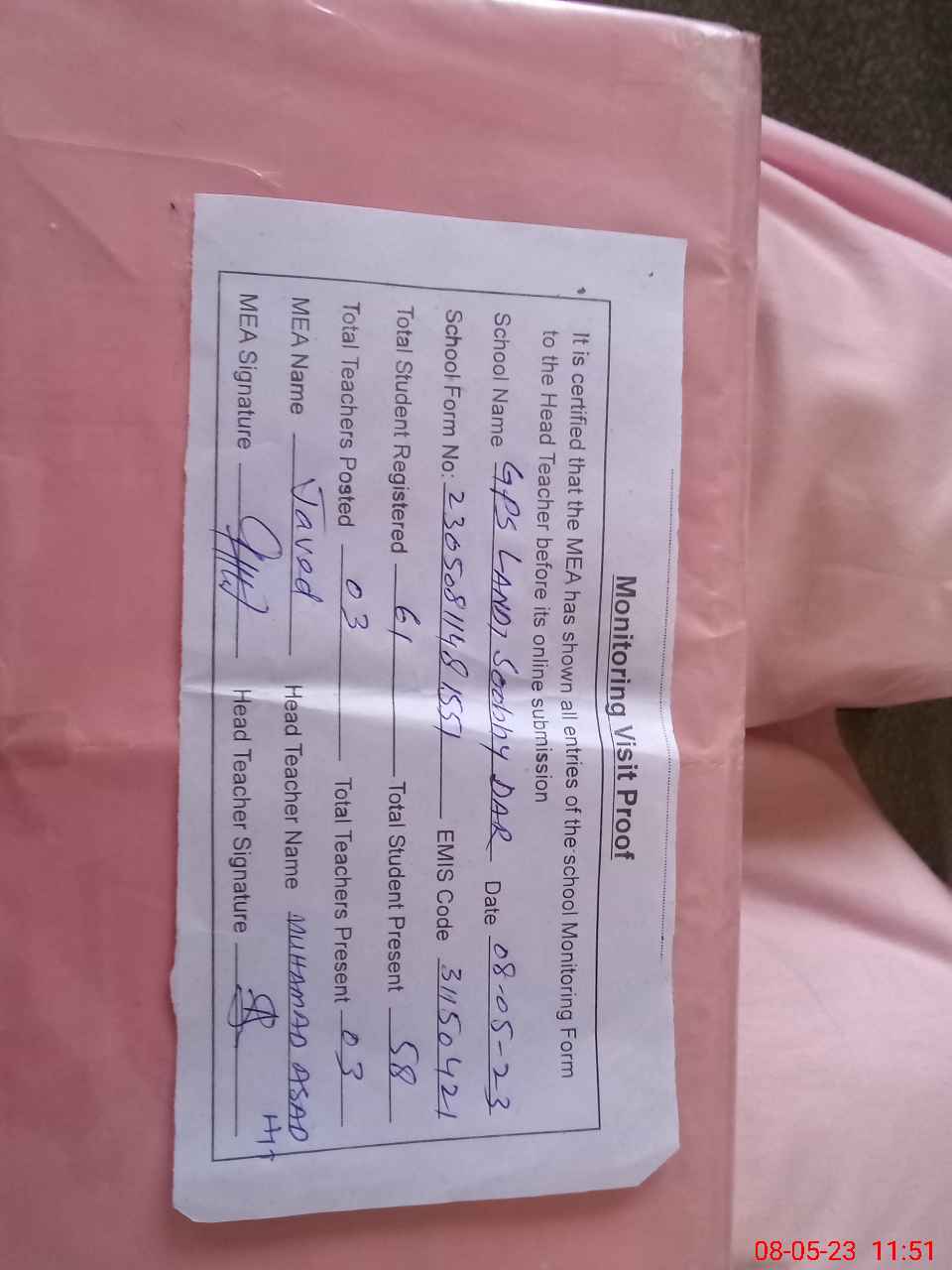 | EMIS Code: 31150421 | Name of School: GPS LANDI SOOBHAY DAR | |||