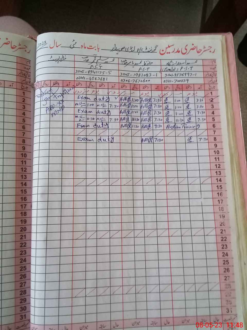 | 31**** | Mu**** Sa**** Qa**** | Contract | 0 | 10 | 0 | 0 | 0 | 0 | 0 | 0 | 0 | Exam Duty | |