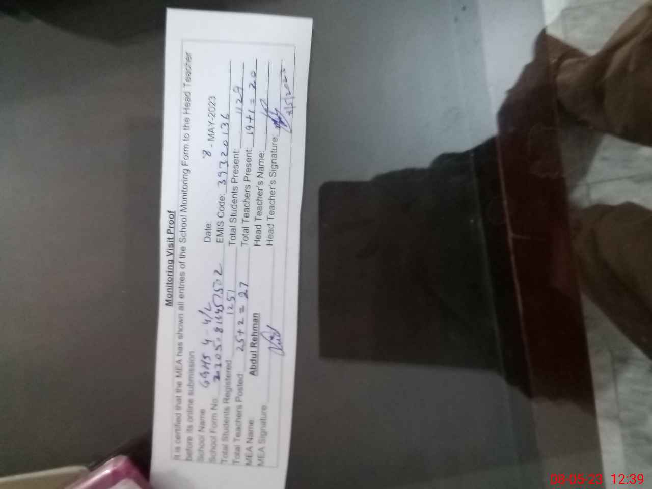 | Certified that this School was Inspected by the Undersigned MEA/DMO Today and the Information Stated Above is as Per Record. | |||||