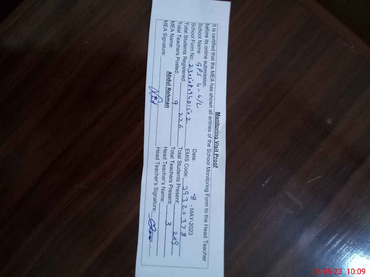 | EMIS Code: 39320378 | Name of School: GPS CHAK 4/4-L | |||