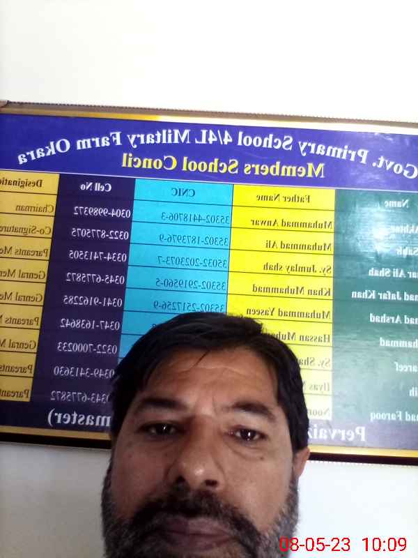| Name: PE**** AK**** Designation: (School Headmaster's/Headmistress's) HEADMASTER Phone/Cell Number: 03**** |