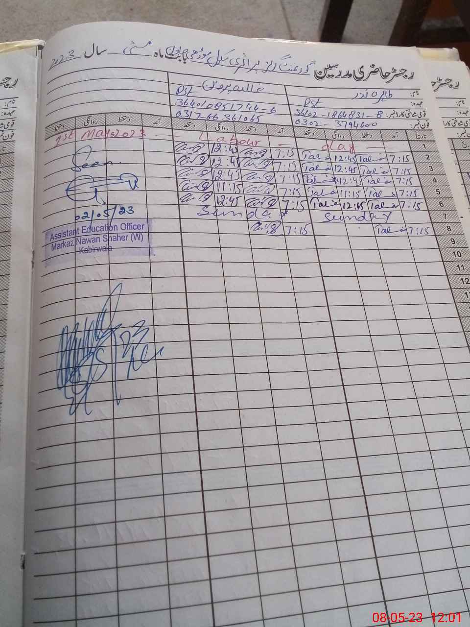 | Name: TA**** NA**** Designation: (School Headmaster's/Headmistress's) PST Phone/Cell Number: 03**** |