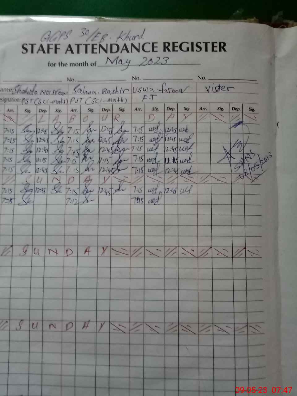 | Name: SH**** NA**** Designation: (School Headmaster's/Headmistress's) PST Phone/Cell Number: 03**** |