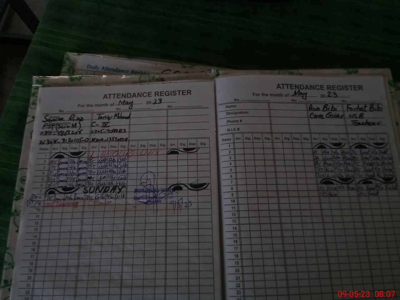 | CNIC | Full Name | Designation | R/C | Absence During Last Calender Month |