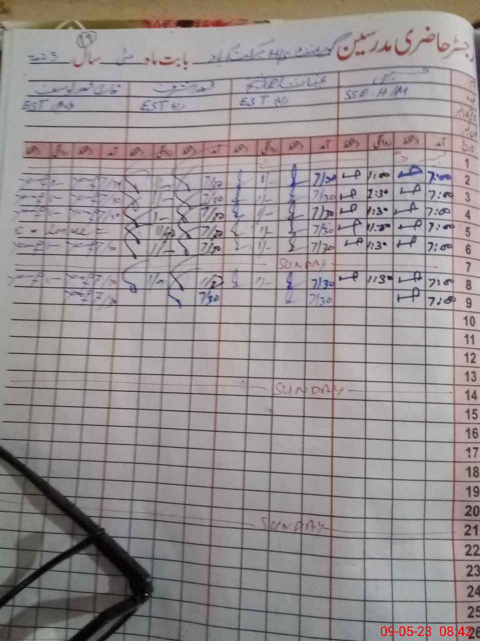 | 33**** | Mu**** Sh**** | EST | Regular | 0 | 0 | 0 | 0 | 0 | 0 | 0 | 0 | 0 | Exam Duty |