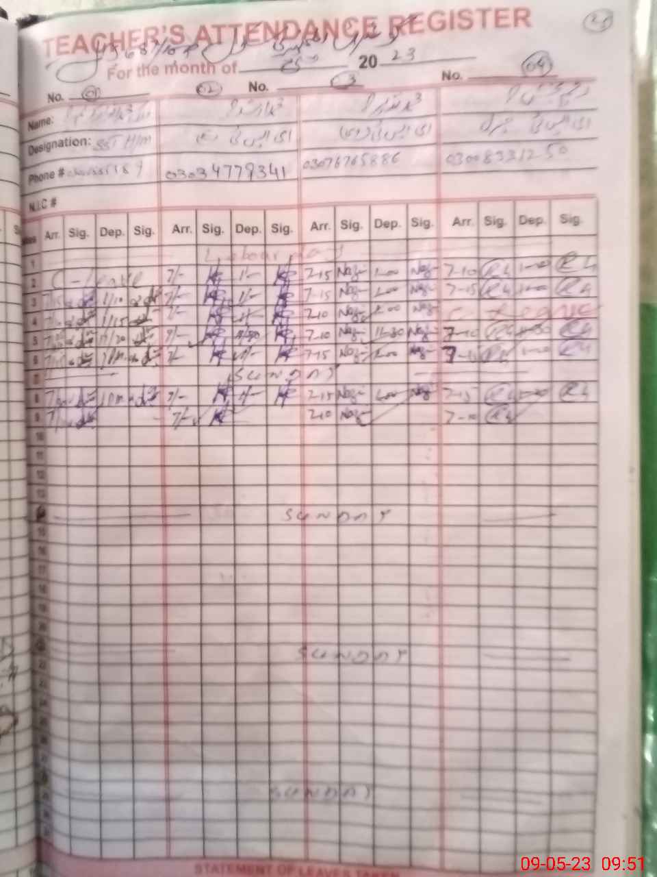 | Name: Sa**** Ma**** Qa**** Designation: (School Headmaster's/Headmistress's) EST Phone/Cell Number: 03**** |