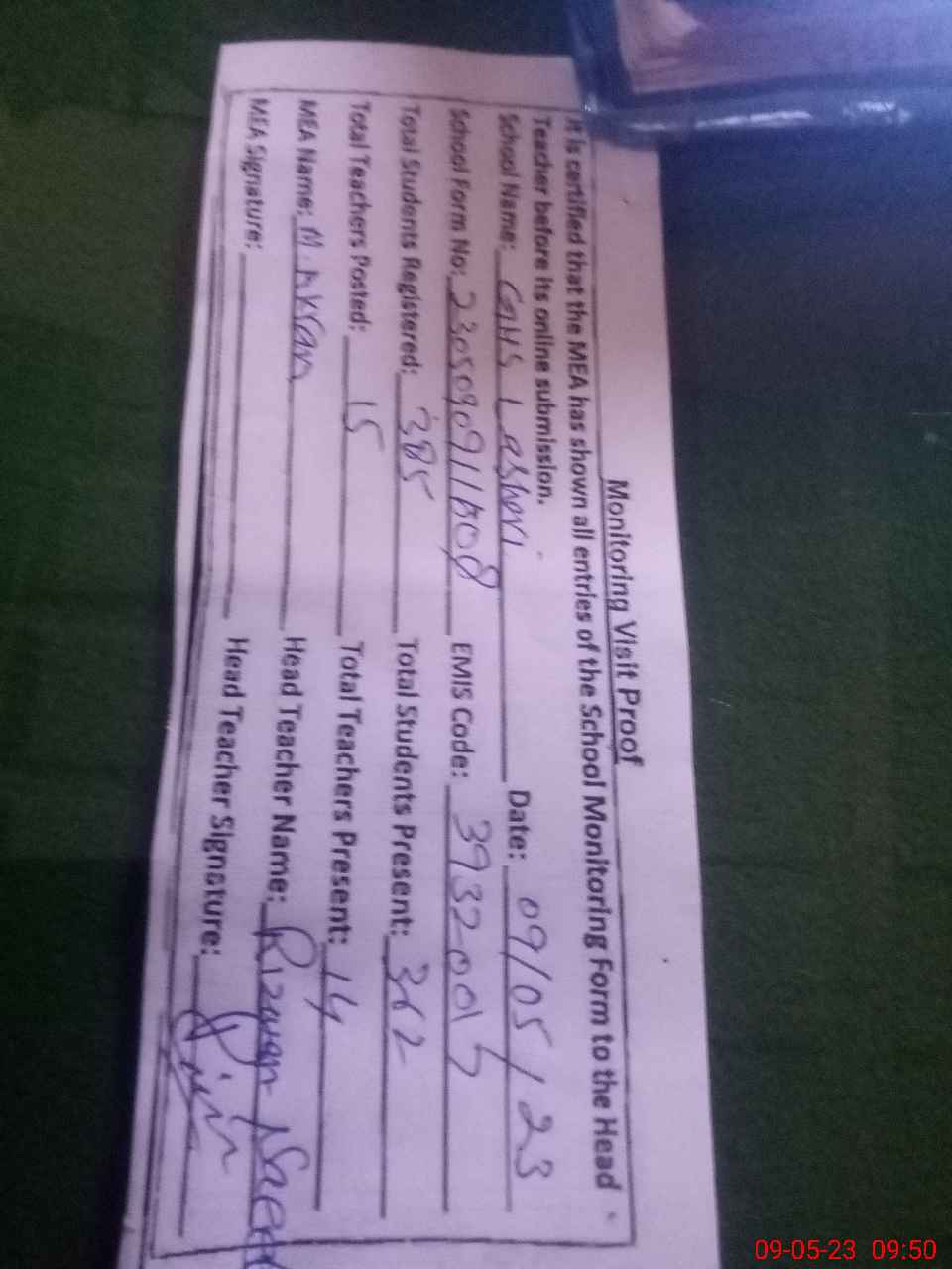 | EMIS Code: 39320017 | Name of School: GHS LASHARI | |||