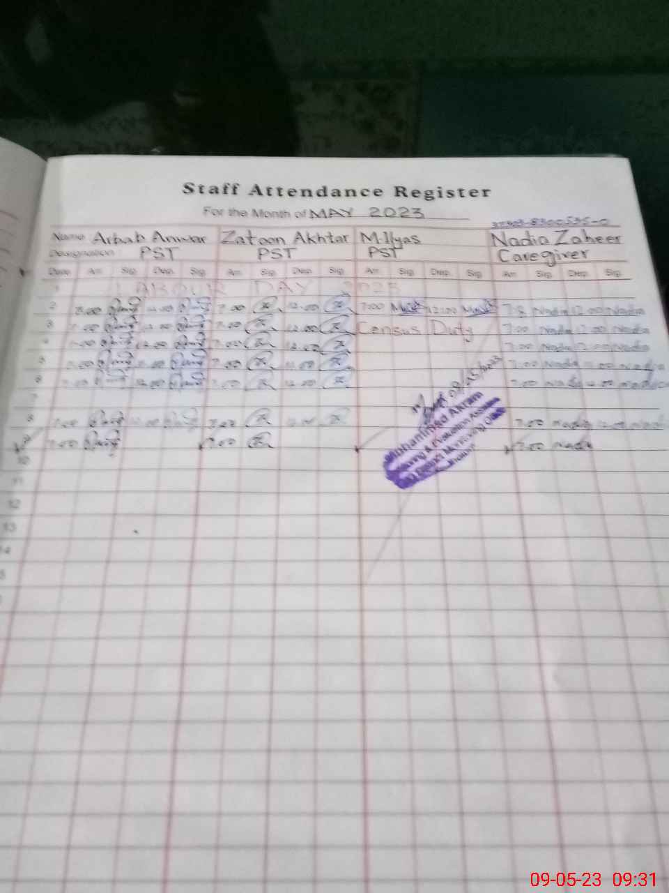 | CNIC | Full Name | Designation | R/C | Absence During Last Calender Month |