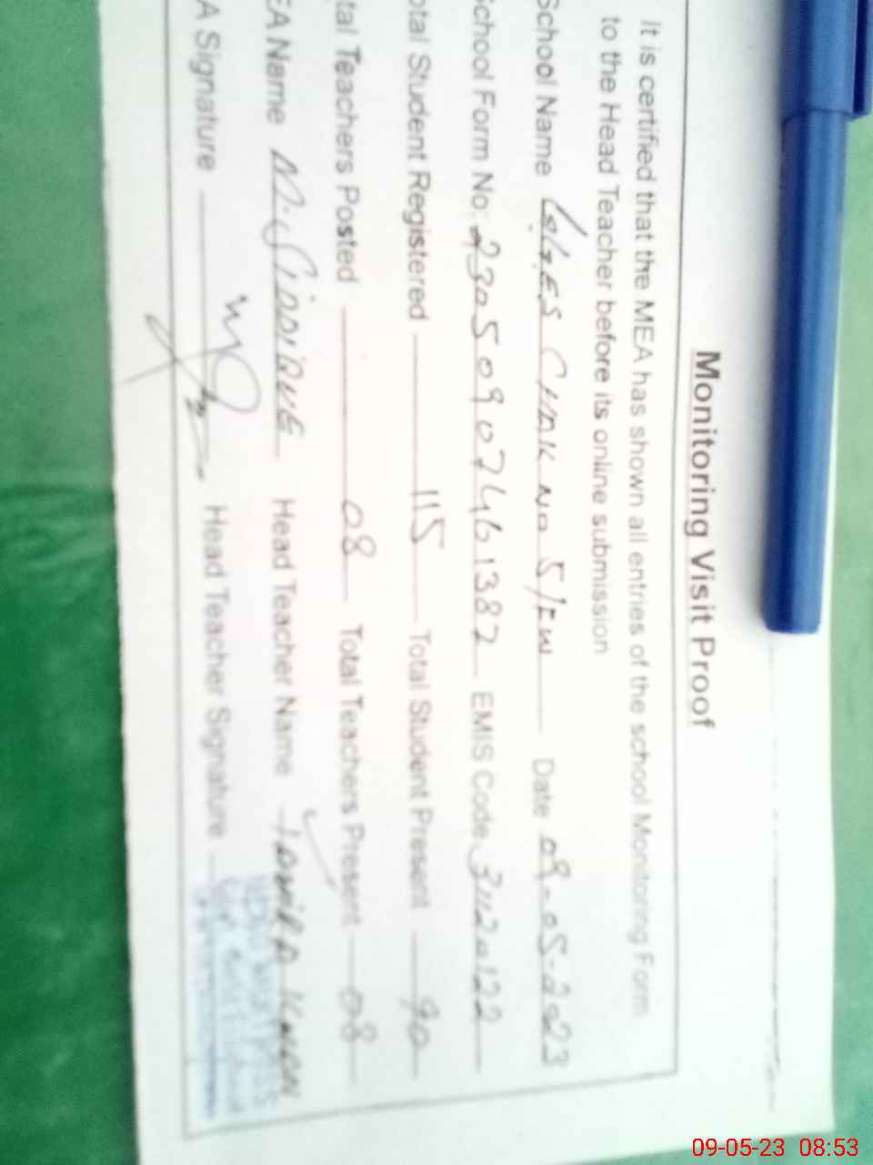 | Attendance Register | Head Teacher | MEA with School | Visit Proof |