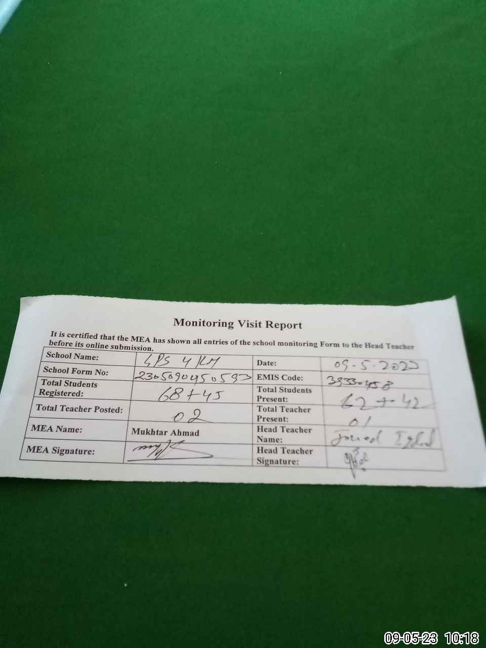 | EMIS Code: 39330458 | Name of School: GPS CHAK NO. 4 KM | |||