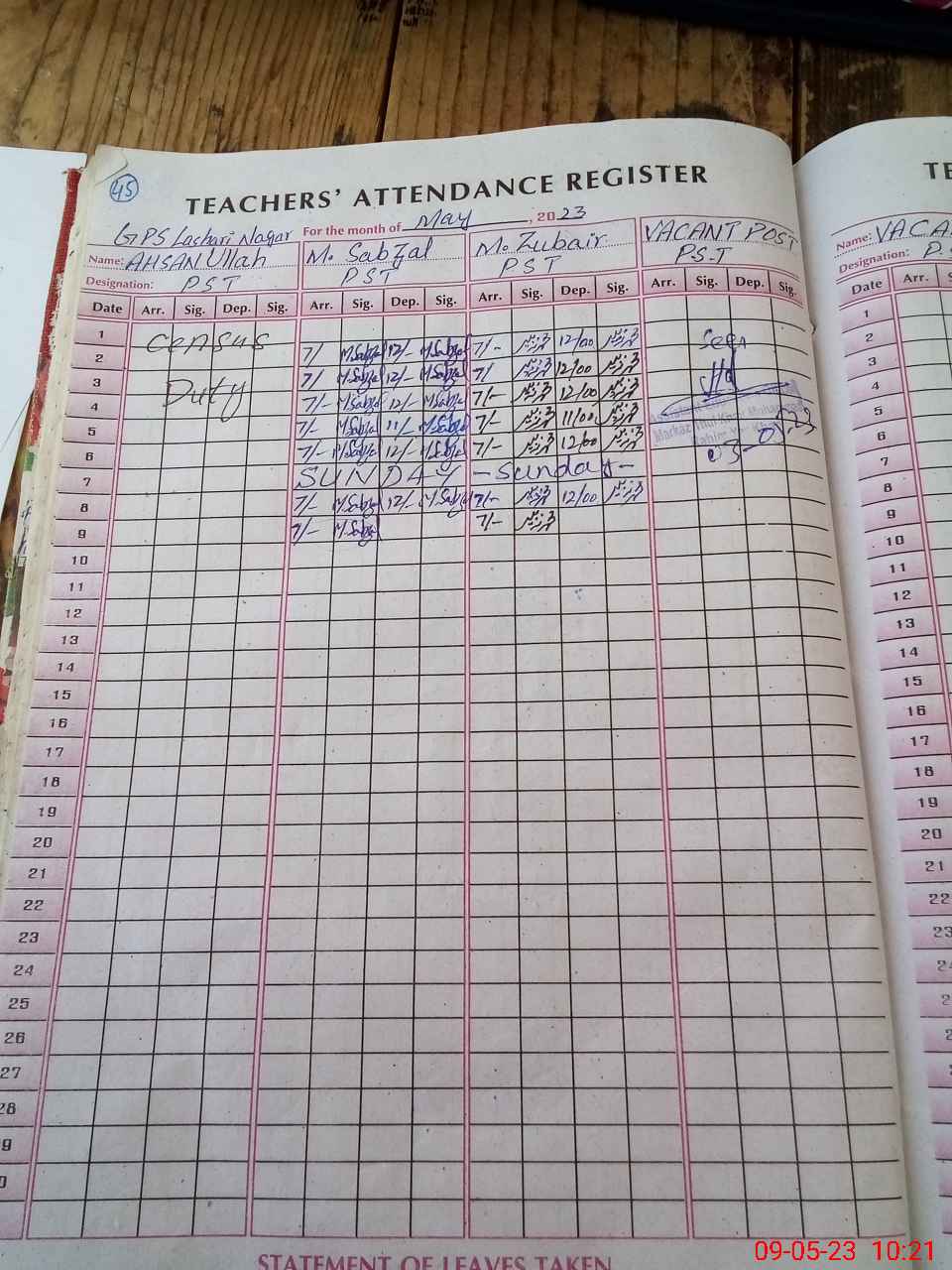 | CNIC | Full Name | Designation | R/C | Absence During Last Calender Month |
