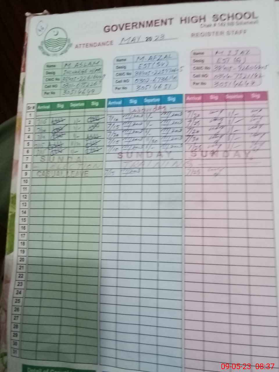 | Name: MU**** IJ**** Designation: (School Headmaster's/Headmistress's) EST ART Phone/Cell Number: 03**** |