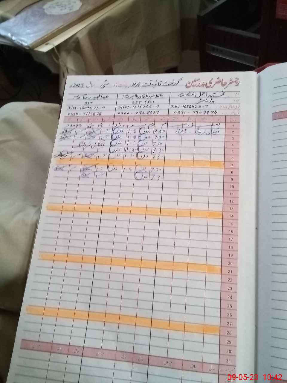 | CNIC | Full Name | Designation | R/C | Absence During Last Calender Month |