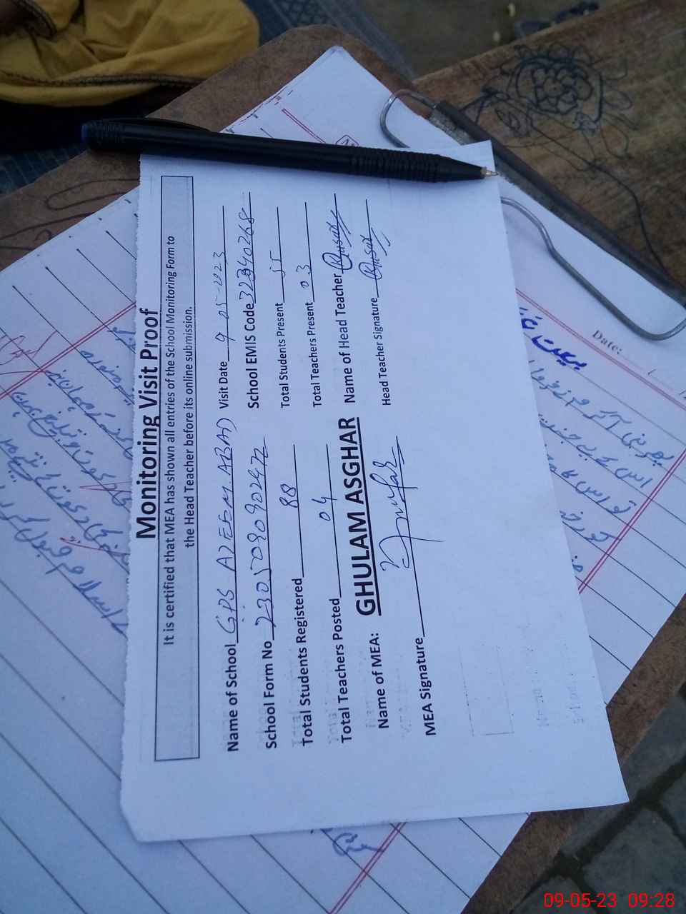 | Attendance Register | Head Teacher | MEA with School | Visit Proof |