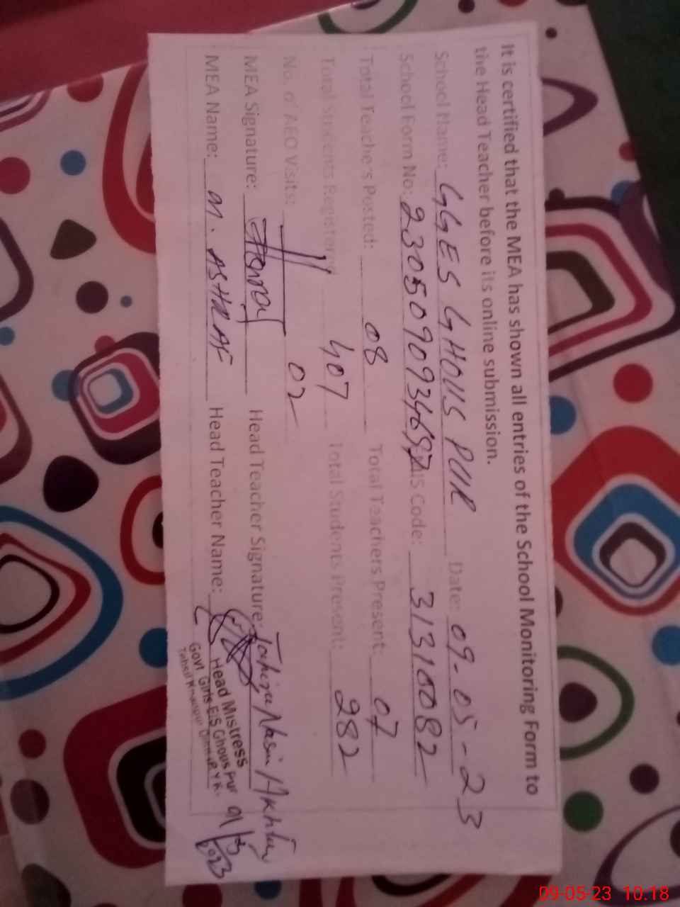 | EMIS Code: 31310082 | Name of School: GGES GHOUS PUR | |||