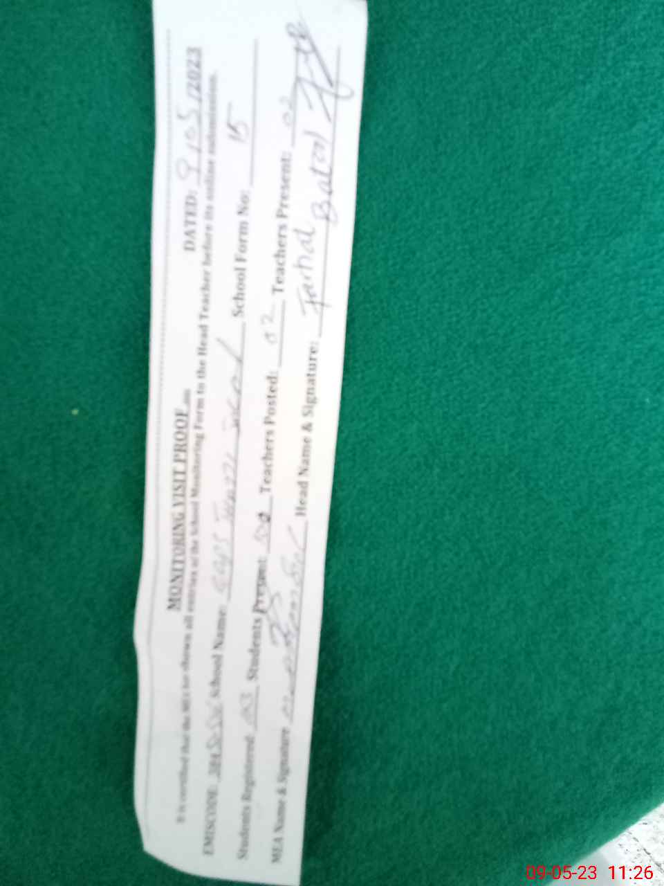 | Certified that this School was Inspected by the Undersigned MEA/DMO Today and the Information Stated Above is as Per Record. | |||||
