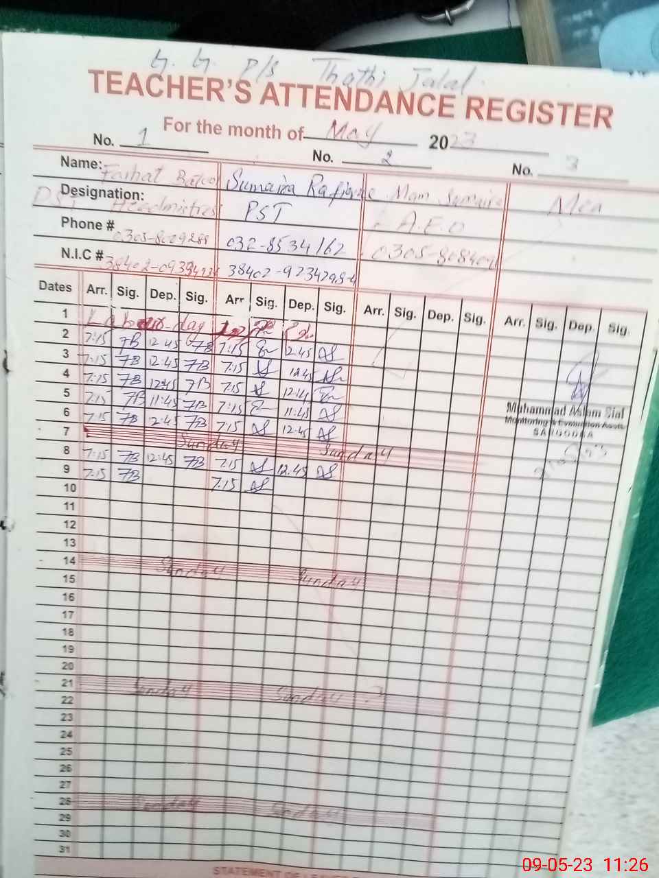 | District: SARGODHA | Tehsil: SAHIWAL | Markaz: THATTI JALAL - FEMALE | Level: Primary | |