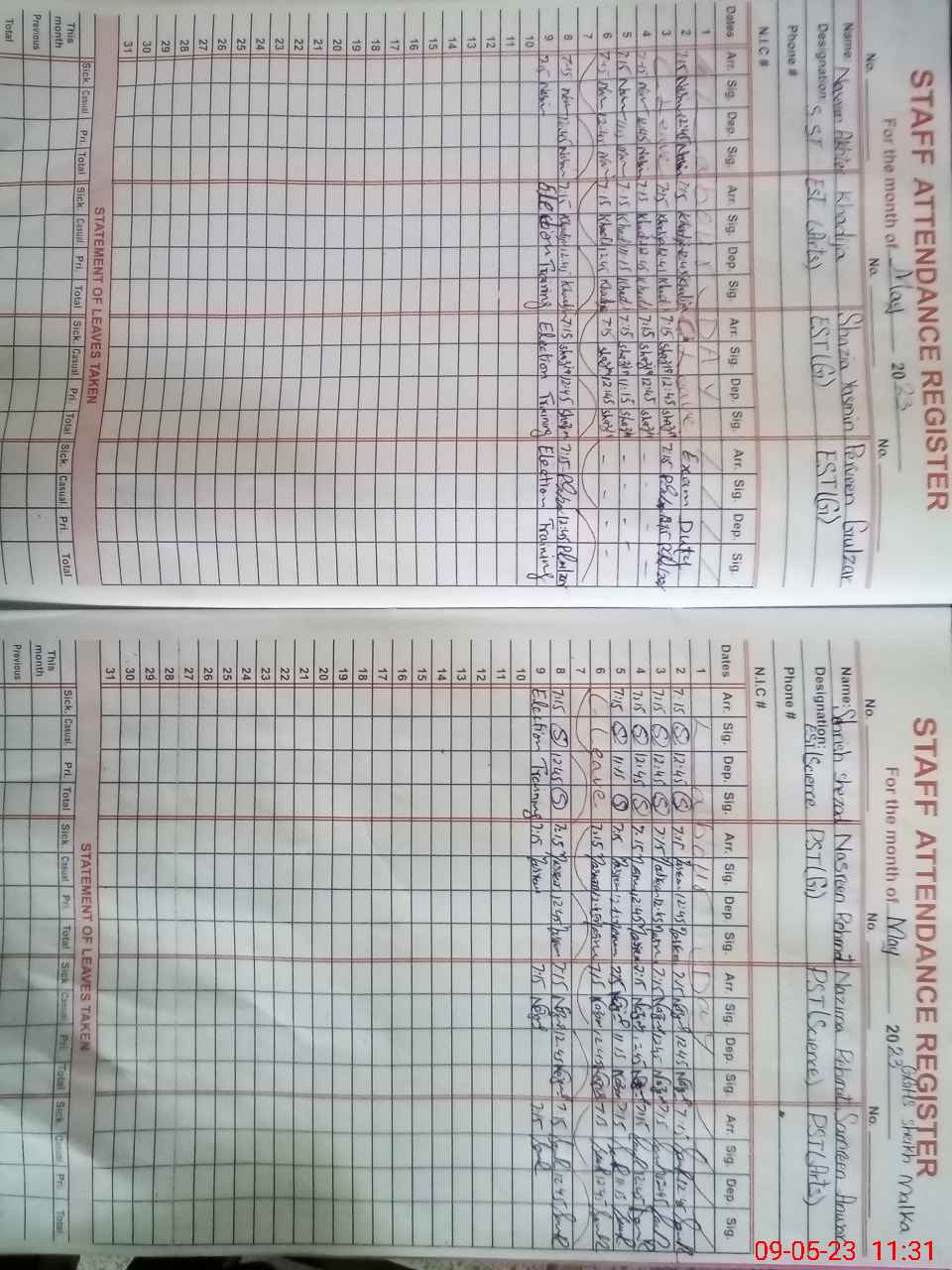 | CNIC | Full Name | Designation | R/C | Absence During Last Calender Month |