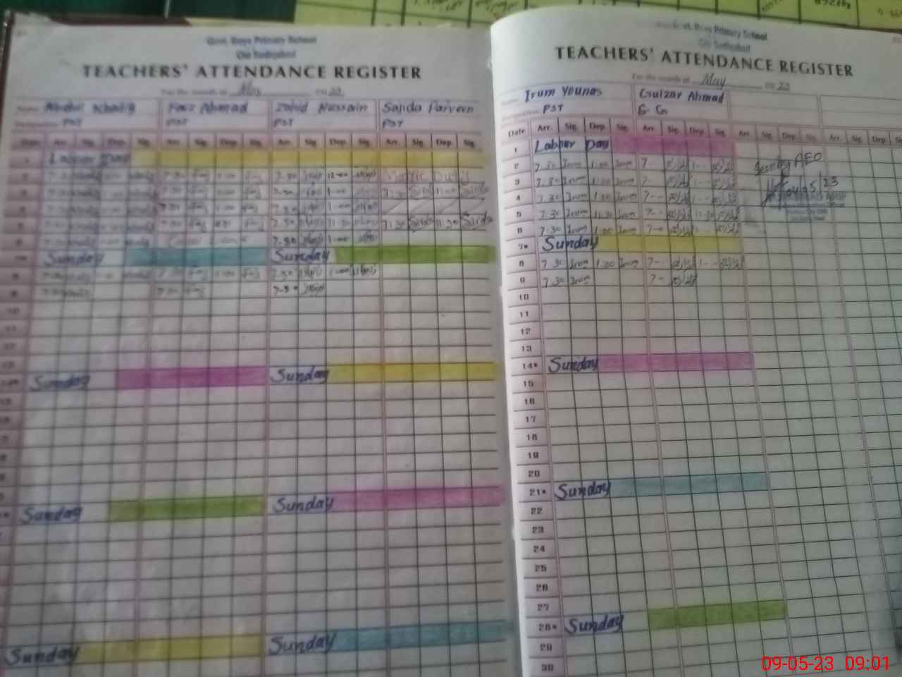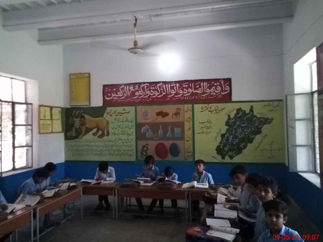 | Total no. of Classrooms: 7 No. of Classrooms Used for Teaching: 6 No. of Classrooms Storing Old Furniture, FTBs, etc: 0Comments if Any: Teacher Sajida Perveen absent because she is not on Exams duty as well as not on any training |