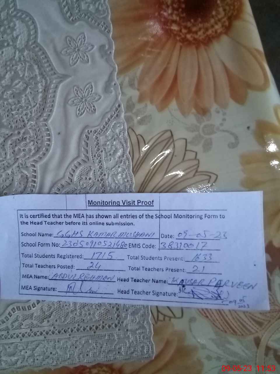| EMIS Code: 38310017 | Name of School: GGHS KAMMAR MUSHANI | |||
