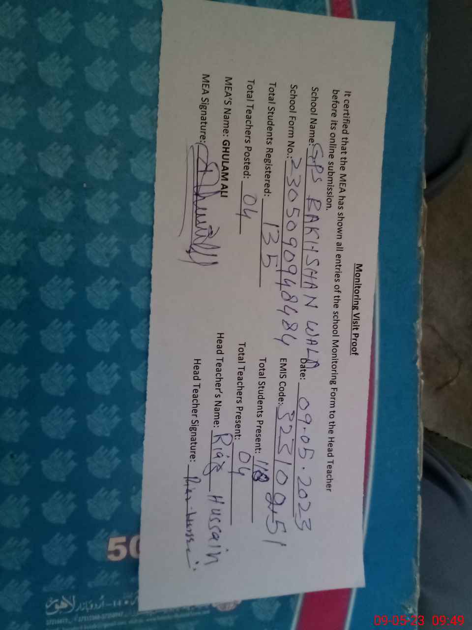 | EMIS Code: 32310251 | Name of School: GPS BAKHSHAN WALA | |||