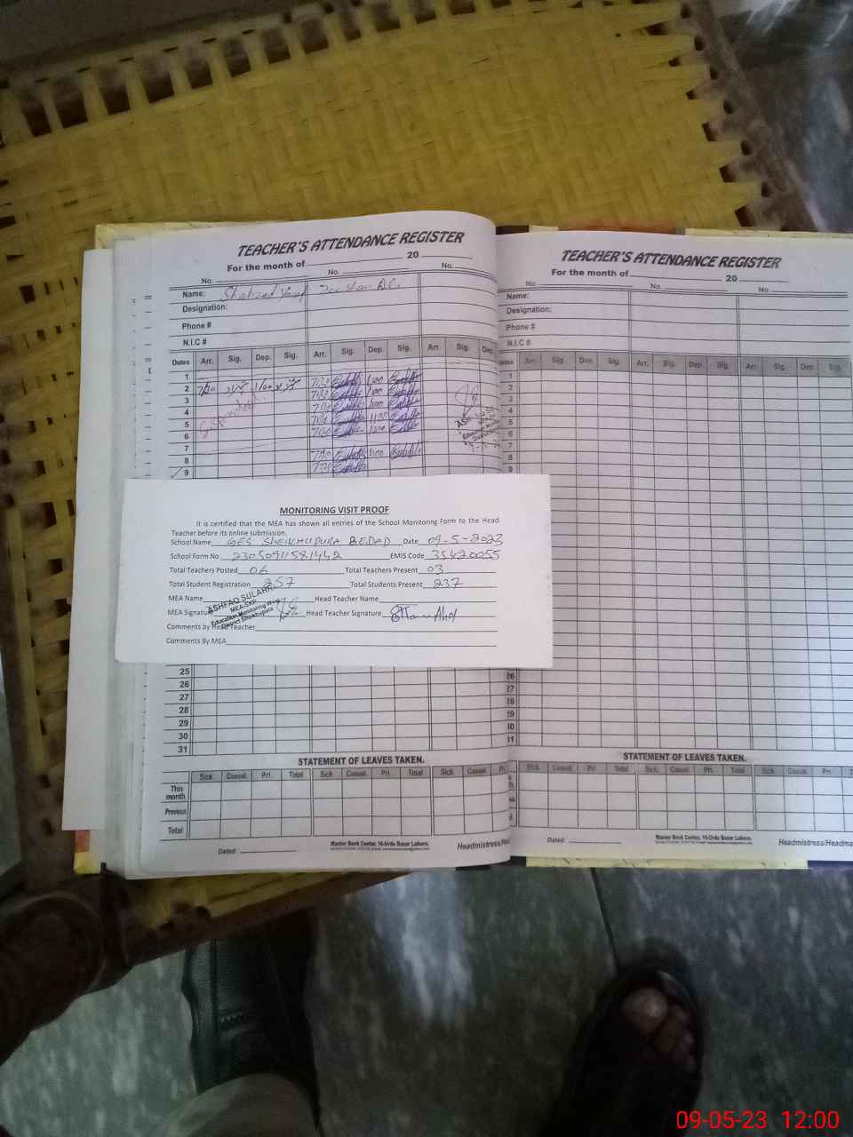 | Attendance Register | Head Teacher | MEA with School | Visit Proof |