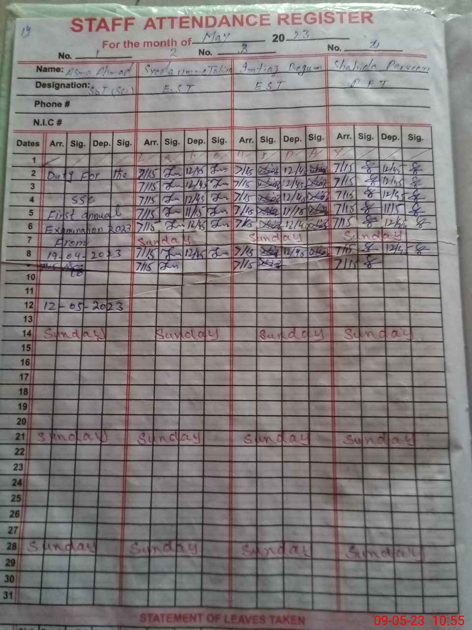 | 31**** | As**** Ah**** | Contract | 0 | 29 | 0 | 0 | 0 | 0 | 0 | 0 | 0 | Exam Duty | |