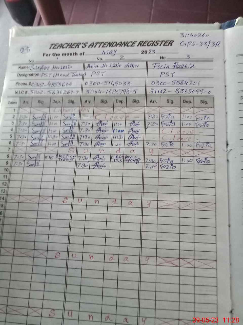 | CNIC | Full Name | Designation | R/C | Absence During Last Calender Month |